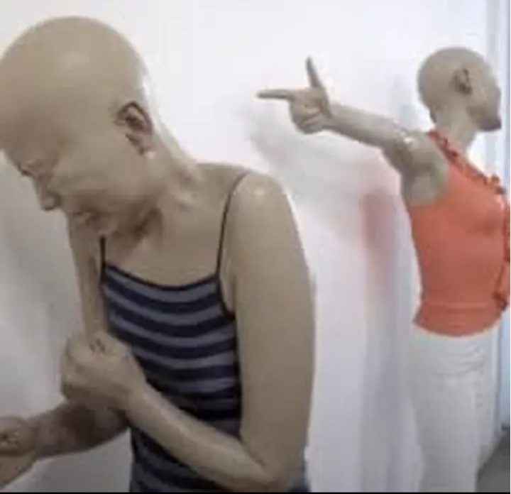 The mannequin on the left looks like they're doing an impression of Kyle Rittenhouse crying in court.