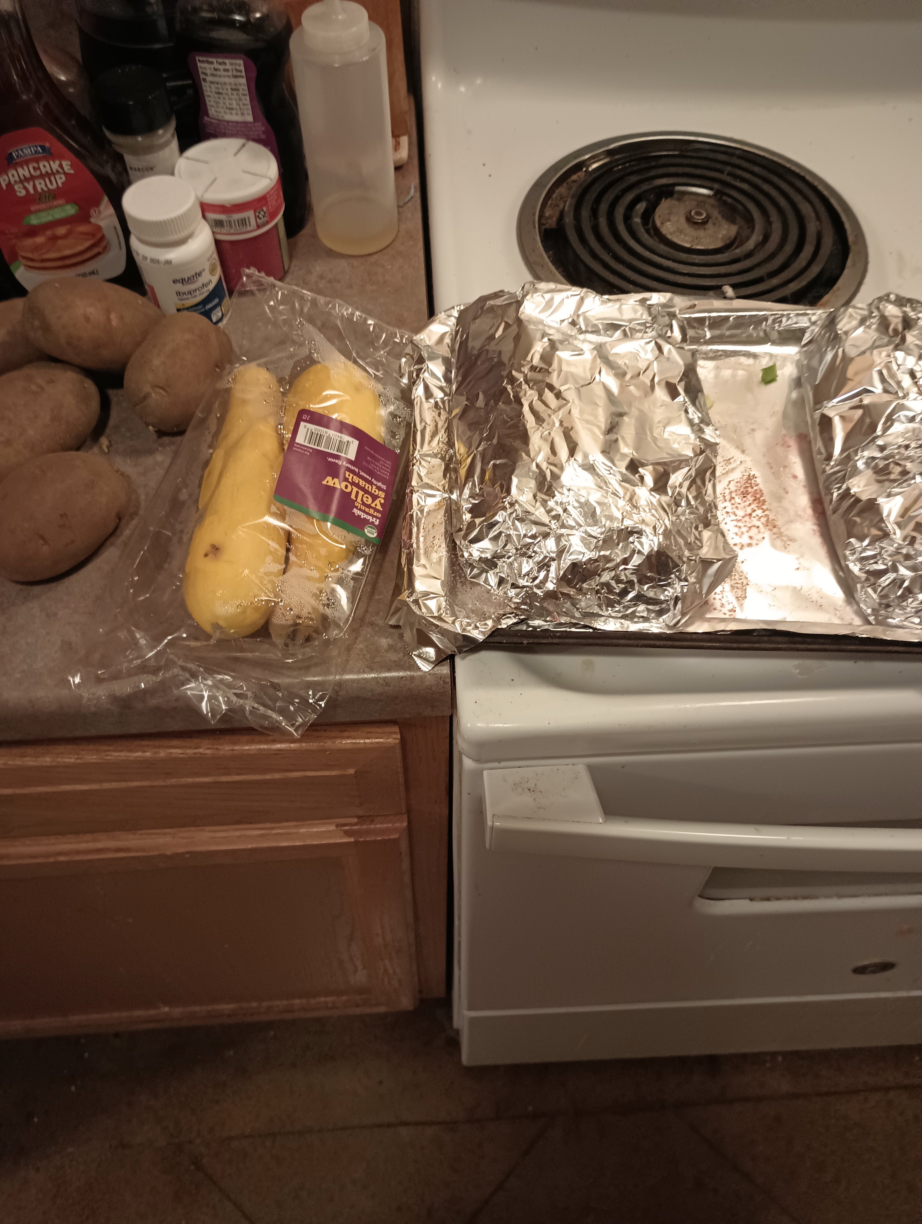 couple of half slabs of ribs about to slow broil. seared squash and mashing some taters. I'll be eating kinda late but i want these ribs falling apart -