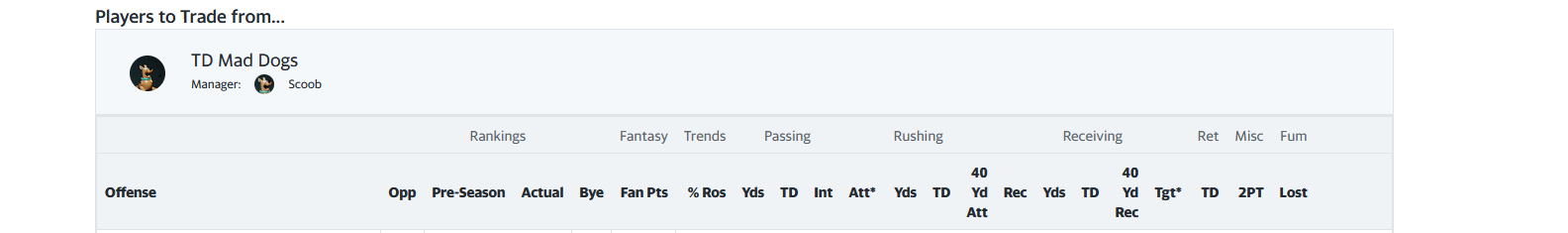 CountFrylock Posted Tuesday at 05:43 AM Posted Tuesday at 05:43 AM 29 minutes ago, molarbear said: I wasn't sure which team was yours, but I proposed a trade to one of the 1-5 teams? Are you the one hurting for QBs? You sent a trade my way yes but the wide receiver i would have gotten was hurt and is still hurt this is my team 1 Quote